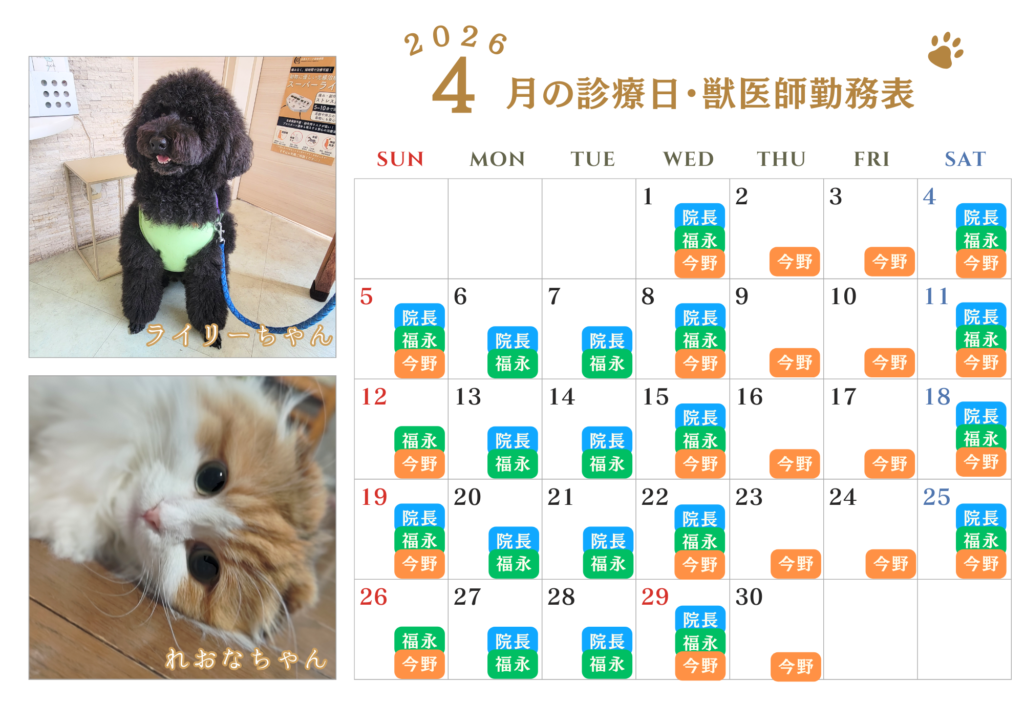 4月の診療予定&獣医師勤務表